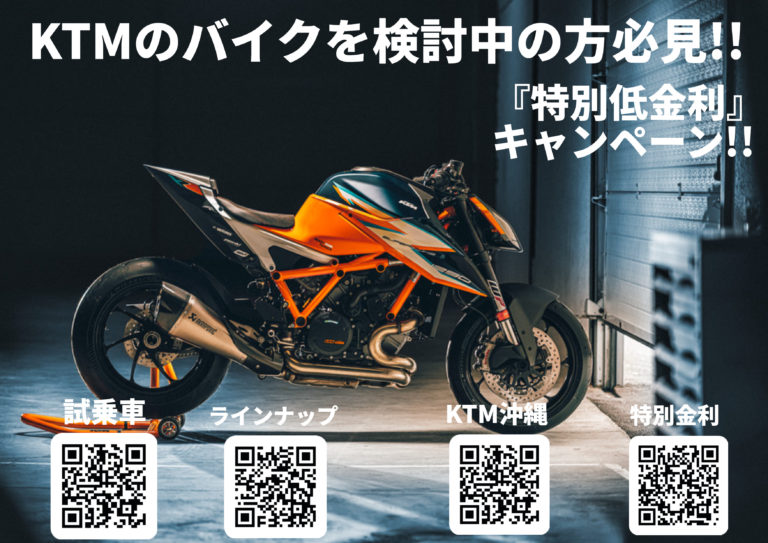2021年12月18日土曜日~19日日曜日にKTM沖縄にて店頭試乗会を行います。試乗は11時から16 […] -